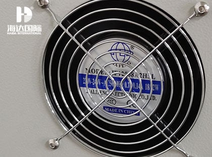 10、測試部分:不銹鋼材質(zhì),箱門為兩層5mm厚的鋼化玻璃,可觀察被測試試樣的狀態(tài),后側(cè)設計有排風扇,并預留外接排風接口。