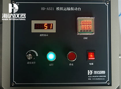 海達(dá)儀器HD-A521 模擬運輸振動臺通過電機傳動使兩側(cè)偏心輪同時轉(zhuǎn)動,使工作臺面產(chǎn)生振幅,通過電位器可調(diào)節(jié)偏心輪的轉(zhuǎn)速。