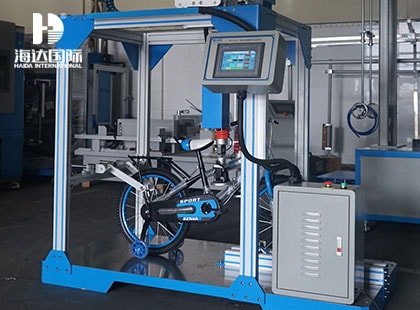 海達(dá)儀器HD-J242-1 驅(qū)動系統(tǒng)靜負(fù)荷試驗儀適用于單速系統(tǒng)下測量兒童自行車的車架、腳蹬、傳動系統(tǒng)和后輪的組合件,如有變速機(jī)構(gòu)也含在試驗范圍內(nèi),分別對左右腳蹬的中心逐漸施加一定的力,并保持15s,檢查是否有損壞現(xiàn)象。
